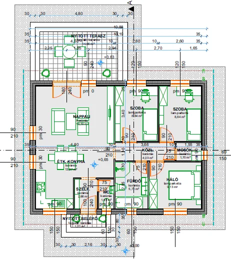 A beépítést szabályozó paramétereket családi ház esetében a jogszabályok által előírtak szerint kell figyelembe venni.